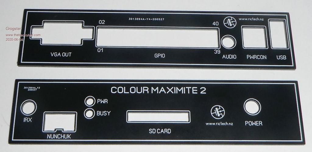 THERE IS ONE SMALL ERROR with these, and that is that I have accidentally swapped over the POWER and BUSY LED legends, which will require that you fit the LED's to the panel and secure with some glue, and then run three short wires to the board.  I will fix this in the next batch of panels, and matherp has also emailed me about how to get rid of the production number that the PCB factory put on these panels.  It was an option that I missed when I ordered these ones.