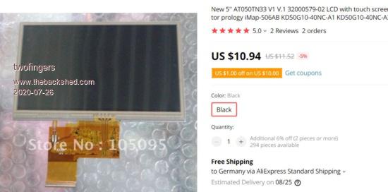 To whom it may concern: The display arrived very well packed from china yesterday. So far as I have been able to test everything works perfectly - display and touch. Cost: $ 10 including shipping. Shipping time: 13 days. Regards Michael causality ≠correlation ≠coincidence |