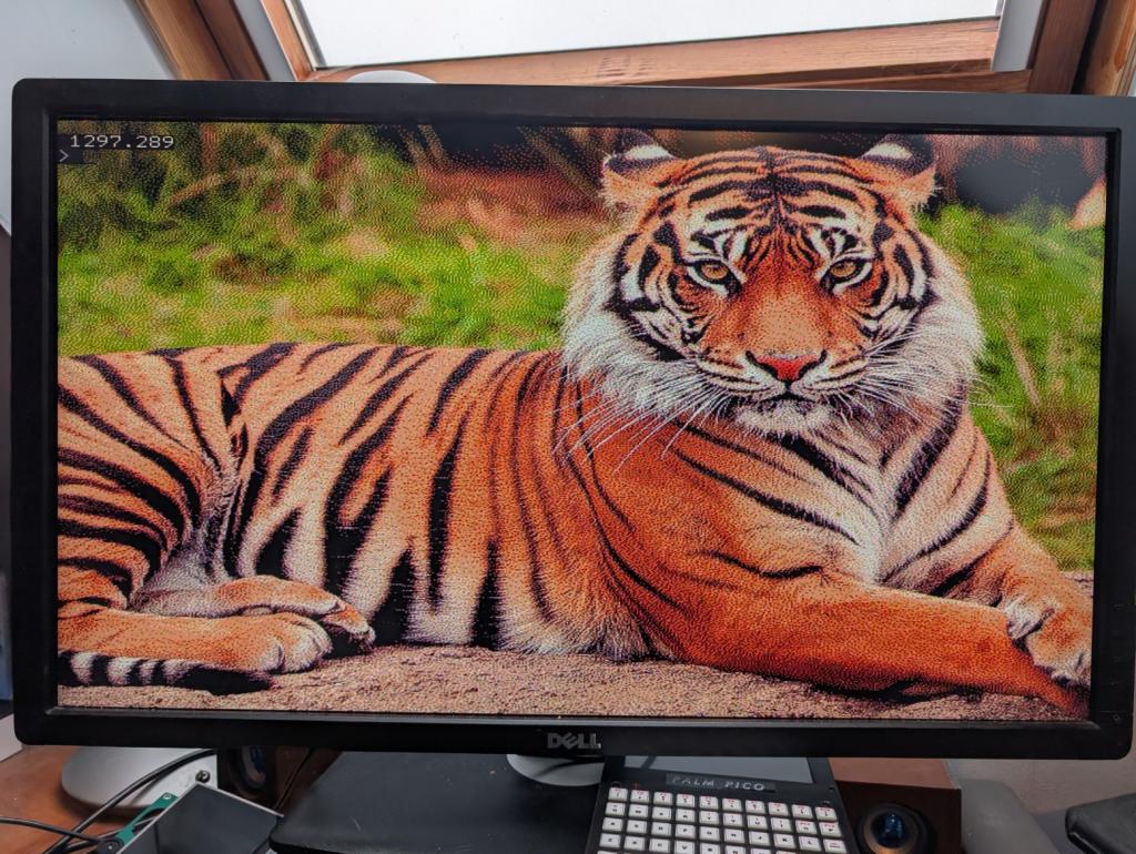 Please don't take this the wrong way.... Here is an image on PICOMITE VGA RP2350 Mode 3 so 640x480 RGB121 standard palette using the new command timer=0:load dithered "b:/tiger640":?timer As you can see it took 1.3 seconds to load and draw. ![]() Here is the genesis of the command using CLAUDE Total time to create the fully working new capability which will be in the next release - less than 1 hour. The world really has changed ![]() Here is the code // BMP structures typedef struct __attribute__((packed)) { uint16_t bfType; uint32_t bfSize; uint16_t bfReserved1; uint16_t bfReserved2; uint32_t bfOffBits; } BITMAPFILEHEADER; typedef struct __attribute__((packed)) { uint32_t biSize; int32_t biWidth; int32_t biHeight; uint16_t biPlanes; uint16_t biBitCount; uint32_t biCompression; uint32_t biSizeImage; int32_t biXPelsPerMeter; int32_t biYPelsPerMeter; uint32_t biClrUsed; uint32_t biClrImportant; } BITMAPINFOHEADER; // Convert RGB121 to RGB888 void rgb121_to_rgb888_components(uint8_t color, uint8_t *r, uint8_t *g, uint8_t *b) { uint8_t r1 = (color >> 3) & 1; uint8_t g2 = (color >> 1) & 3; uint8_t b1 = color & 1; *r = r1 * 255; *g = g2 * 85; // 255/3 *b = b1 * 255; } // Convert RGB332 to RGB888 void rgb332_to_rgb888_components(uint8_t color, uint8_t *r, uint8_t *g, uint8_t *b) { uint8_t r3 = (color >> 5) & 7; uint8_t g3 = (color >> 2) & 7; uint8_t b2 = color & 3; *r = (r3 * 255) / 7; *g = (g3 * 255) / 7; *b = (b2 * 255) / 3; } // Convert RGB888 to RGB121 with dithering uint8_t rgb888_to_rgb121_dither(int16_t r, int16_t g, int16_t b) { // Clamp values r = (r < 0) ? 0 : (r > 255) ? 255 : r; g = (g < 0) ? 0 : (g > 255) ? 255 : g; b = (b < 0) ? 0 : (b > 255) ? 255 : b; // Convert to RGB121 (1 bit R, 2 bits G, 1 bit B) uint8_t r1 = (r >= 128) ? 1 : 0; uint8_t g2 = (g * 3 + 127) / 255; uint8_t b1 = (b >= 128) ? 1 : 0; return (r1 << 3) | (g2 << 1) | b1; } // Convert RGB888 to RGB332 with dithering uint8_t rgb888_to_rgb332_dither(int16_t r, int16_t g, int16_t b) { // Clamp values r = (r < 0) ? 0 : (r > 255) ? 255 : r; g = (g < 0) ? 0 : (g > 255) ? 255 : g; b = (b < 0) ? 0 : (b > 255) ? 255 : b; // Convert to RGB332 (3 bits R, 3 bits G, 2 bits B) uint8_t r3 = (r * 7 + 127) / 255; uint8_t g3 = (g * 7 + 127) / 255; uint8_t b2 = (b * 3 + 127) / 255; return (r3 << 5) | (g3 << 2) | b2; } int ReadAndDisplayBMP(int fnbr, int display_mode, int img_x_offset, int img_y_offset, int x_display, int y_display) { BITMAPFILEHEADER fileHeader; BITMAPINFOHEADER infoHeader; unsigned int bytes_read; int result; // Read file header result = IMG_FREAD(fnbr, &fileHeader, sizeof(BITMAPFILEHEADER), &bytes_read); if (result != 0 || bytes_read != sizeof(BITMAPFILEHEADER)) { error("BMP: Failed to read file header"); return -1; } // Verify BMP signature if (fileHeader.bfType != 0x4D42) { // "BM" error("BMP: Invalid file signature (not a BMP file)"); return -2; } // Read info header result = IMG_FREAD(fnbr, &infoHeader, sizeof(BITMAPINFOHEADER), &bytes_read); if (result != 0 || bytes_read != sizeof(BITMAPINFOHEADER)) { error("BMP: Failed to read info header"); return -3; } // Verify format - must be 24-bit RGB if (infoHeader.biBitCount != 24) { error("BMP: Must be 24-bit RGB888 format"); return -4; } // Verify no compression if (infoHeader.biCompression != 0) { error("BMP: Compressed format not supported"); return -5; } // Verify biPlanes is 1 (standard requirement) if (infoHeader.biPlanes != 1) { error("BMP: Invalid planes value (must be 1)"); return -6; } int width = infoHeader.biWidth; int height = infoHeader.biHeight; int is_bottom_up = (height > 0); if (height < 0) height = -height; // Check size limits if (width > 1920 || height > 1080 || width <= 0 || height <= 0) { error("BMP: Image dimensions invalid or exceed 1920x1080"); return -7; } // Calculate row size (rows are padded to 4-byte boundary) int row_size = ((width * 3 + 3) / 4) * 4; // Allocate buffers for Floyd-Steinberg dithering // We need to store error values for current and next line int16_t *error_buffer_r = (int16_t *)GetMemory(width * 2 * sizeof(int16_t)); int16_t *error_buffer_g = (int16_t *)GetMemory(width * 2 * sizeof(int16_t)); int16_t *error_buffer_b = (int16_t *)GetMemory(width * 2 * sizeof(int16_t)); if (!error_buffer_r || !error_buffer_g || !error_buffer_b) { if (error_buffer_r) FreeMemory((void *)error_buffer_r); if (error_buffer_g) FreeMemory((void *)error_buffer_g); if (error_buffer_b) FreeMemory((void *)error_buffer_b); error("BMP: Failed to allocate error buffers"); return -8; } // Initialize error buffers to zero for (int i = 0; i < width * 2; i++) { error_buffer_r[i] = 0; error_buffer_g[i] = 0; error_buffer_b[i] = 0; } int16_t *curr_error_r = error_buffer_r; int16_t *next_error_r = error_buffer_r + width; int16_t *curr_error_g = error_buffer_g; int16_t *next_error_g = error_buffer_g + width; int16_t *curr_error_b = error_buffer_b; int16_t *next_error_b = error_buffer_b + width; // Buffer for reading pixel data (5 lines max) int lines_per_buffer = 5; uint8_t *line_buffer = (uint8_t *)GetMemory(row_size * lines_per_buffer); if (!line_buffer) { FreeMemory((void *)error_buffer_r); FreeMemory((void *)error_buffer_g); FreeMemory((void *)error_buffer_b); error("BMP: Failed to allocate line buffer"); return -9; } // Buffer for output BGR triplets (maximum width for visible portion) int max_visible_width = (HRes < width) ? HRes : width; uint8_t *output_buffer = (uint8_t *)GetMemory(max_visible_width * 3); if (!output_buffer) { FreeMemory((void *)line_buffer); FreeMemory((void *)error_buffer_r); FreeMemory((void *)error_buffer_g); FreeMemory((void *)error_buffer_b); error("BMP: Failed to allocate output buffer"); return -10; } // Process image line by line for (int y = 0; y < height; y += lines_per_buffer) { int lines_to_read = (y + lines_per_buffer > height) ? (height - y) : lines_per_buffer; int bytes_to_read = row_size * lines_to_read; // Read lines result = IMG_FREAD(fnbr, line_buffer, bytes_to_read, &bytes_read); if (result != 0 || bytes_read != bytes