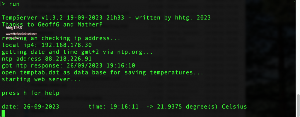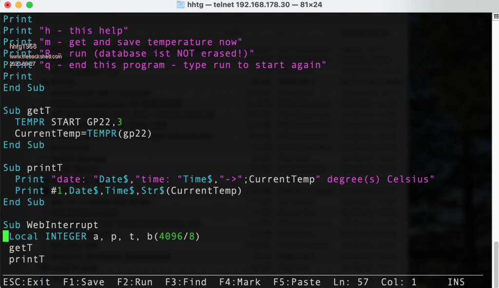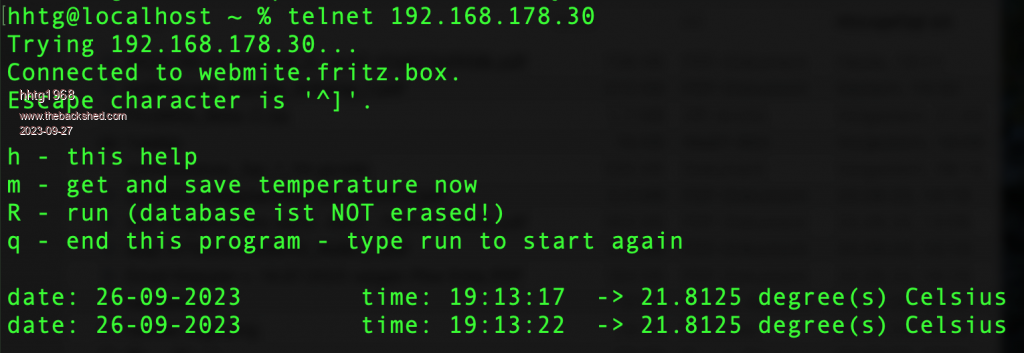 Here i show via fotos the webmite itself, connecting via telnet, edit via telnet, running and writing data to the data base file.