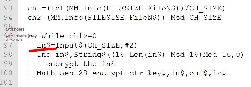 Hi Michael, I wanted to try out your AES FILE encryption but only get an Error: [97] In $=Input$(CH_SIZE,#2) ERROR: Missing Program Statement Have you any suggestions? Greetings Daniel |