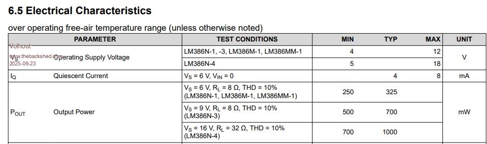 Ah, the "for your MMBasic requirements" led me(and, I assume, Volhout) to assume a 3V3 or 5V supply. :) Certainly, when you can get 9V or more there is a much bigger range of chips.The LM386 has been around for about 30 years now, from a time when it was rare to go below 6V for anything audio-related. Still a nice chip if you don't push it too hard.
