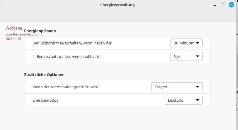 @Volhout I have only a LAN connection to my Router. Wifi I don't see in my configuration. In "Systemeinstellungen/Zusätzliche Optionen" there is only an "Energiemodus", which I set now for trial to "Leistung" Let's see what effect this has. |