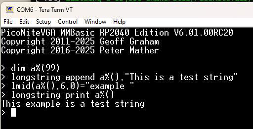 In RC20 I will also include an new command LMID this is the longstring equivalent of MID$. This will allow you to have a large text file in a longstring and with a combination of LINSTR and LMID be able to edit it in quite a powerful way. ![]() |