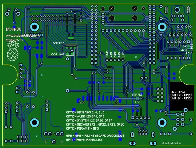 A little HDMI / USB / PS2 machine to use the WeAct Studios module, preferably with a PSRAM soldered onto it. I have one now and it appears to work. :)