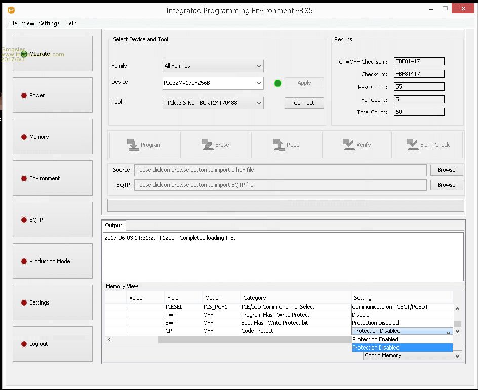 No, you have to set it in IPE. This is because it is a flag set in a special part of flash memory. EDIT: I cannot find this feature in IPE (it used to be in the old MPLAB programming function). This means that the flag has to be set at compile time and may possibility prevent MMBasic from running because it needs to manipulate flash memory. There is almost certainly a bit in the hex file which if flipped will turn this feature on. But I don't know which one. Geoff Geoff Graham - http://geoffg.net |