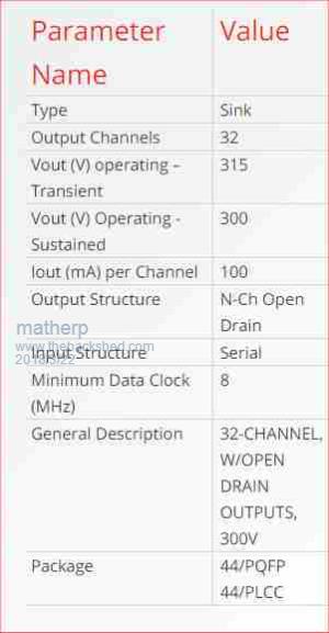 Hi matherp; However, it can't operate as a current sink on the cathodes. While the software to drive the 4 line 12 transistor array is a bit complicated I got it to work nicely. I started with a 1 Nixie clock and progressed to a 2 Nixie, and now the full 6 nixie version. The 6 Nixie requires the use of the 44pin uMITE though, for the extra pins. This is a learning experience for me, and a kind of "Right of Passage", with a nice Nixie Clock. I did make one in the '70s using pre TTL Ray3 parts. I lost track of that clock years ago so I need a new one to replace it. My next step is to add PWM dimming to the driver routines with no added components. I don't know if this will work yet. I really don't want to have the PWM modulate the high voltage anodes side. Lastly, I'm making a software real time clock that uses the 1ppS from a GPS receiver. I started with a WWVB receiver but the signal is too unreliable. My GPS's 1ppS is extremely reliable. I made a small tester to look for missing 1ppS pulses. This has run for over a year and never missed a beat. Much simpler than reading the GPS sentences. The software clock is better than the internal RTC and much more accurate than using the external PFC8563 RTC. BTW, there are a number of other shift register and I2C driver chips available. I think the Motorola I2C MCP23008 is capable of driving 2 Nixies using the 12 Transistor array current sink circuit. You might ask why I'm using the 12 Transistor array current sink circuit? It's because current sink drivers don't need a particularly stable nor regulated power supply. I've tested my circuit, using 300V KSC2330 NPN transistors from about 140V to 400V. The Nixies brightness is constant over this whole range. I will be posting this stuff when completed. redrok |