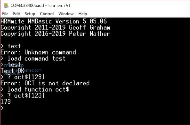 Try this: 2019-05-10_231917_Armmite1.3.zip I've also solved the number of functions and commands issue ![]() I'll make many of "my" commands and functions loadable and that way users can select which they need for a specific application. The LOAD FUNCTION and LOAD COMMAND commands cannot be used in a program for obvious reasons, but they can be put in MM.STARTUP so that they are set up as part of boot sequence and are then immediately available for use. There is no performance impact of this approach ![]() ![]() |