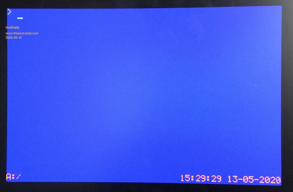 Graphics modes This post will introduce the 5 graphics resolutions on the CMM2 and the three colour depths in more detail and the use of the MODE command. I will mention the 12-bit modes but will reserve a full explanation of these until a separate tutorial. Also, still to come in this series is more on the PAGE command, using the basic graphics in a more efficient way and, of course, sprites. A lot of this post will be slightly theoretical, but the more you understand what is going on under the cover of the CMM2 the better you will be able to make the most of its capabilities. Lets start by being a VGA monitor and asking it to show the Display Information for the signal it is receiving. This isn't affected by the colour depth. Mode 1 (800x600) : Monitor sees 800x600 @ 60Hz Mode 2 (640x400) : Monitor sees 640x480 @ 75Hz Mode 3 (320x200) : Monitor sees 640x480 @ 75Hz Mode 4 (480x432) : Monitor sees 640x480 @ 75Hz Mode 5 (240x216) : Monitor sees 640x480 @ 75Hz That looks a bit odd - lets explain. VGA monitors, particularly modern TFT types, have a limited range of signal timings that they will accept and sync up properly. We have chosen to use just two that are supported by all monitors. 800x600 @ 60Hz needs a 40MHz pixel clock. 640x480@75Hz needs a 31.5MHz pixel clock. All other timings, vertical sync and horizontal sync are defined as a multiple of the underlying clock period. Before going into this in more detail I'll answer the question - why 640x400 and not 640x480? In the first post I explained the way memory is used for the graphics pages and that 800x600 resolution with 1 byte per pixel uses 480,000 out of 512K (512*1024=524288) bytes of the fastest memory. 640x480 would only use 307,200 bytes so no problem BUT 640x480 with 16-bit colour would use 614,400 bytes - more than we have available. 640x400x2 = 512,000 just inside the 512K limit allowing full colour images to be displayed from the fastest memory. Moreover, the main retro computers Commodore64, Amiga, Atari-ST all used 320x200 as their main graphics resolution, the same as our mode 3 and 640x400 is exactly double this. But, I hear you say, The manual says the CMM2 supports 800x600x16-bit resolution amongst others. Yes, but in this case the first megabyte of the 3 MBytes of SDRAM is used as video display memory - page 0. The SDRAM isn't as fast as the internal memory but in most cases works perfectly well in this mode and it is great for displaying pictures. With a pixel clock at 40MHz and 2 bytes per pixel the LTDC is reading that memory at 80Mbytes/second. Even more extreme is 12-bit mode. Without going into the explanation here 12-bit mode uses 4 bytes per pixel so 800x600x32-bit now needs memory to be read at 160Mbytes/second and uses 2Mbyte of SDRAM! The SDRAM is also used for MMBasic arrays and things like buffers for playing MP3 and FLAC files. If you set the video mode to 800x600 12-bit resolution and play a MP3 file and run a program then occasionally the monitor may flicker or lose sync. The extent to which this happens is very much monitor dependent and while there may be no issue on your monitor there may be for other people. For this reason the graphics modes that use the SDRAM as the main display memory are only enabled if you execute OPTION MODES UNLOCKED and you are discouraged from distributing programs that use these modes. Back to the main story. Supported resolutions Mode 1 displays 800x600 pixels and the LTDC just reads out the bytes one at a time at 40Mhz. Bytes are not read during line and frame blanking periods (HSYNC and VSYNC) and the LTDC handles this for us. Mode 2 displays 640x400 pixels but the monitor sees 640x480. This is achieved by increasing frame blanking by 80 lines split between the top and bottom (front porch and back porch in the jargon). The memory used is 640x400 pixels and this is arranged exactly like we saw for mode 1 earlier, top left to bottom right. Mode 4 displays 480x432 pixels for Maximite compatibility. This is achieved by reducing the pixel clock to 31.5/640*480 = 23.625MHz but maintaining the same absolute durations for line and frame blanking periods. In this case frame blanking is extended by 48 lines split between the top and bottom. The change in pixel clock rate isn't a perfect solution, particularly with LCD monitors. These work by splitting the period between HSYNC pulses and sampling the analog signal at the expected pixel rate. So they are sampling at 31.5MHz and we are changing values at 23.625Mhz. They then need to map this to the physical screen resolution (say 1280 pixels) so, depending on the monitor, you may see slight artifacts. ![]() Notice how the left side of the "0" in "11-05" is wider than the right. This is a monitor sampling issue and probably wouldn't occur on an old analogue CRT monitor. The memory used is 480x432 pixels and this is arranged exactly like we saw for mode 1 earlier, top left to bottom right. Mode 3 displays 320x200 pixels. You can probably easily guess now how the 320 is created. The pixel clock is halved from 31.5MHz to 15.75MHz. As this is a simple power of 2 there is no sampling issue like we saw with mode 4. However the monitor is still expecting 480 lines and that can't be changed. Unfortunately the LTDC doesn't have the capability to clock out each line of data from memory twice so we have had to replicate each line in the firmware. The memory used is therefore only half that of 640x400 rather than a quarter. As for mode 2 frame blanking is increased by 80 lines split between the top and bottom. The memory used is 320x400 pixels and to get the address of a pixel in memory we now have to compensate for each line being duplicated. e.g. for an 8-bit colour depth: add1% =MM.INFO(page address 0)+ (y * 2) * MM.HRES + x add2% =MM.INFO(page address 0)+ (y * 2 + 1) * MM.HRES + x Mode 5 displays 240x216 pixels and I'll leave to the reader to extrapolate from modes 3 and 4 as to how this works. Supported colour depths The CMM2 supports 3