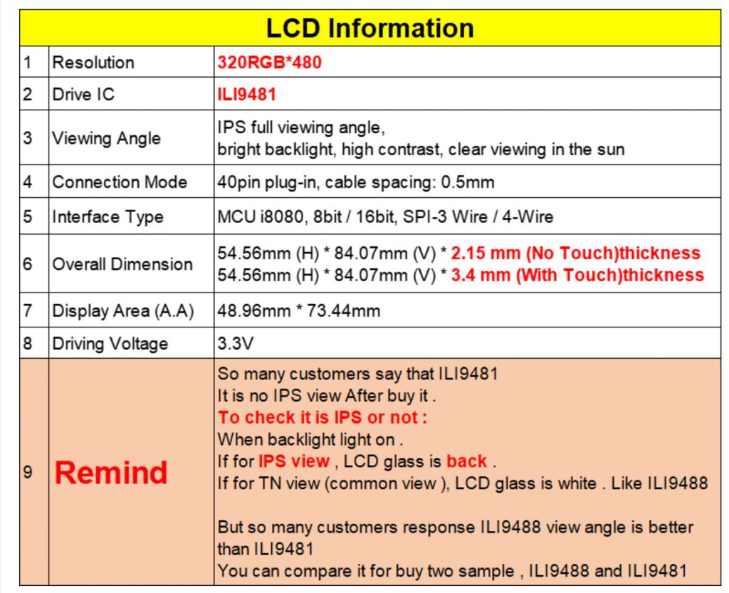 Hi Panky, All, My ILI9481 (on the Left) and ILI9488 (on the Right) As far as I can see the PCBs are identical. ![]() Regards, Mick Mick's uMite Stuff can be found >>> HERE (Kindly hosted by Dontronics) <<< |