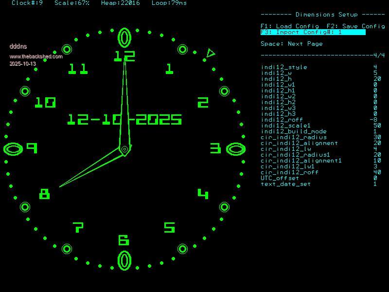 Hello! Having the numbers beyond the face radius can be stylish as well as having the hour markers as 14 corners and the width so large, that they touch each other. If you set it beyond the face, it can be a very nice decoration, the circles too. So all of those are valid style elements and I will definitely try to care. I started with this as HDMI was in a extreme hype but came from ssd1963 LCD as main console. So my first try at the beginning was to get a nice graphic on LCD and I never forgot. Everyone who is interested please try to run the extract on a LCD no matter what resolution. It should run, if you comment out the MODE and the TILE lines. With PSRAM, even the designer should run. Please give it a try! Please experiment with OPTION LCD320 Edited 2025-09-27 00:44 by dddns |