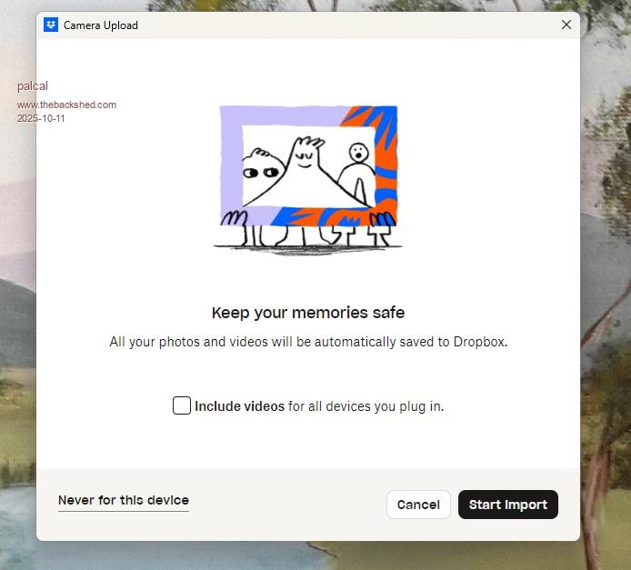 this is DROPBOX recognizing a new USB device and wanting to include it in its ecosystem. Just click "never for this device"