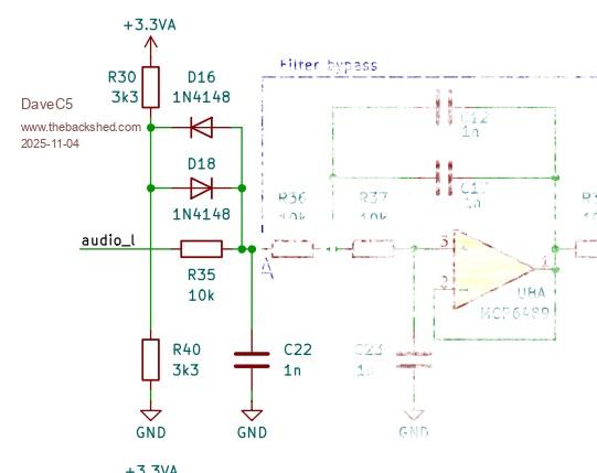 This is the audio filter (similar to pico buddy) tailored to use JLC basic components. The JLC part numbers are added. The only part that is not JLC is the opamp. You can use MCP6002 for mono, and 2 MCP6002 for stereo, or a single MCP6004.