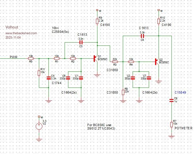 P.S. the picobuddy used a diode clamp between PWM and the input of the active filter. That diode clamp improves the power rail noise immunity (noise from the pico switcher). But when using a linear 3V3 power supply that may not give any improvement.