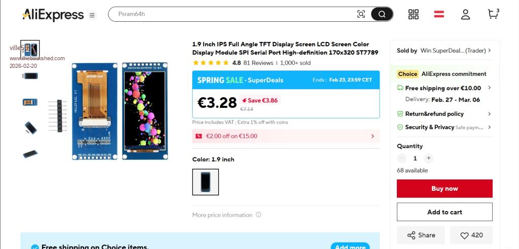 The displays are from Aliexpress, but they are available from many of the usual sources and they all seem to be the same. Only the price differs a lot.