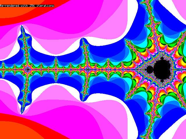 ' Increase iterations for detail at this depth Mandelbrot Draw 256 Print "Re-rendered with 256 iterations" Pause 2000