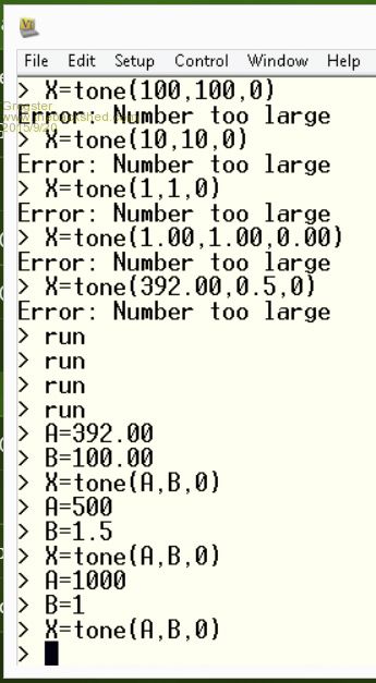 Hi Matherp, I was hoping to use this Tone cfunction but I have been unable to make it work satisfactorily. I was planning to use a Piezo speaker but there is minimal drive out of the port. When I look with the scope although it is working the output is not driving to ground it is only riding on the very top of the dc level at 3.3v, it is only varying by maybe 50mv. Now what I have noticed is that if I set up the pin 25 (I am using a 28 pin MM2) as an output and run a short program that creates a square wave the wave form is perfect full waveform however after running the Tone Cfunction, your test program , If I go back and load my pin 25 test squarewave again, it also only produces a very small wave form on the top dc level. This will remain this way until you power cycle the chip. I have tried another chip and different versions b31 37 and ver 5.00, all behave the same. Any ideas.