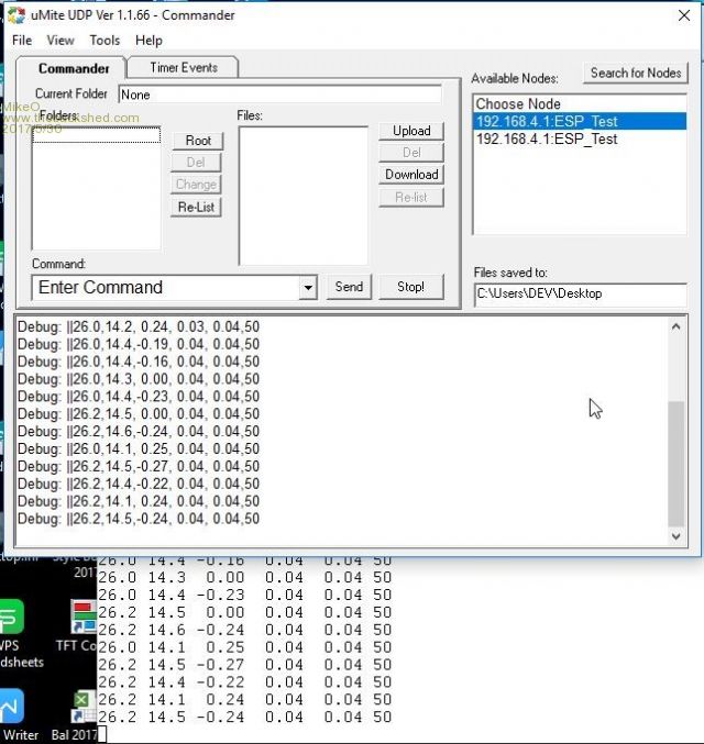 Just a quick post, my latest project using the fantastic little gem from Grogster and Rob. Its a 12v Battery monitor (inspired by BMPRO Device no doupt ) , +-30amps. It outputs on wifi and Usb serial Actual Voltage and current , accumulated Load and Charge AmpHrs , Battery temperature and State of Charge.![]() Photo shows 3D printed enclosure , Battery terminals, from left ESP8266 wifi, ASC711EX current sense, Explore 28,bottom left Temp sensor and DC to DC PSU. ![]() This photo shows the Output @ 5sec intervals. Temp, Volts, Current, Load AmpHrs, Charge AmpHrs, %State of Charge The photo shows a Windows app displaying data stream via wifi (UDP) and below is the USB serial. The Windows app I wrote some time ago to communicate with ESP8266 UDP protocol, I will probably write a more specific app to communicate with the Battery Monitor for windows, I am also trying to learn(get to grips with) B4A so I can make one for Android phone which would possibly be more convenient. Alternately another uMite backpack with LCD display could be used displaying the serial data. I will post more soon. Codenquilts |