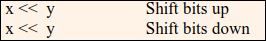 x << y is shift left (obviously), aka up (same as in C) The lowest bit (bit 0, with value 1) is defined to be at the far right. John |
