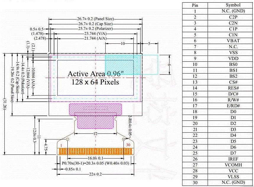 I have never designed a 0.96" into an MX170 based project before, so, wondering if I got the facts straight before getting the CAD part for DEX created. The display I looked at has a 30 pin interface with SSD1306 driver, but should be able to operate in SPI or IIC mode.?? Peter Mather has a C-function code for SPI or IIC operation...