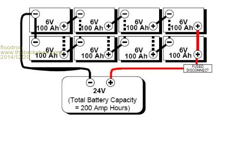 Hi Floodrod The interlacing of the battery bank like this equalizes any small differences between pairs but is best done from a new set that the standing voltage of each pair is matched, without matching the slight differences can result in cross current in each pair, resulting in losses by self discharge, this is more of a problem in stand by banks, that are just floating most of the time, on a working bank the constant load charge cycles make it less of a problem, the only time I have had problems with it was when a farmer fitter a new set of batteries next to an older set, some 10 years difference, so the internal resistances due to longer term sulphation, natural degradation of the plates was different, it reduced the capacity of the newer cells and required more charging, indicating an internal self discharge current was flowing. The other case was different SG of some of the coupled batteries, caused by either more sulphation in some or perhaps a slight difference in the SG of the electrolyte when the batteries where initially flooded, in both cases a long treatment with a desulphator helped and a little bit of acid to balance the SG of the batteries on the second set. I am having similar problems with my batteries at the moment as they are SLA 15 years old and I am trying to rectify the dehydration in various stages across 50 batteries. some are badly sulphated and others are OK, so I have had to go for selective desulphation and it is very time consuming. All the best Bob Foolin Around |