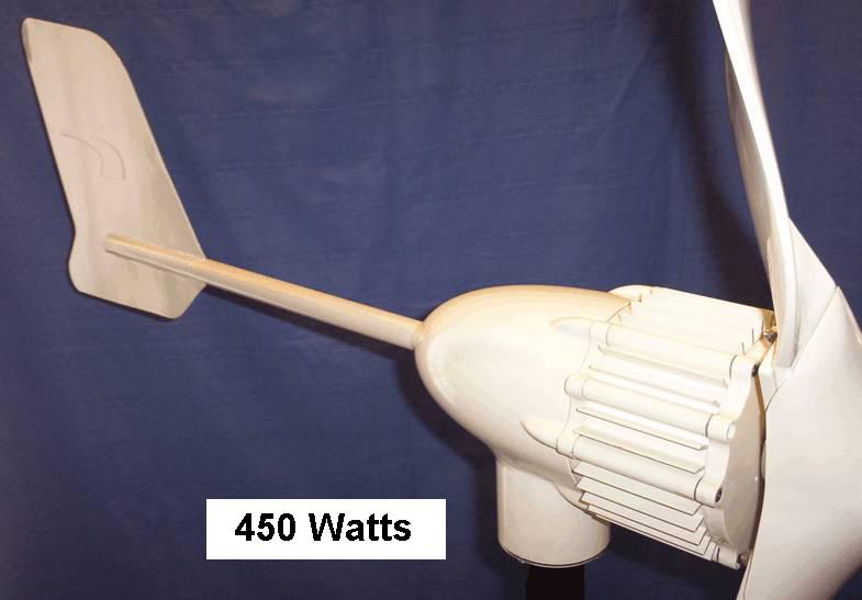 I found a windmill made in China. It is rated at 450 Watts and has a rotor diameter of 1.4 Meters. It's generator is a NeFeB Magnet rotor and wild three phase output. I looks like a well built machine.