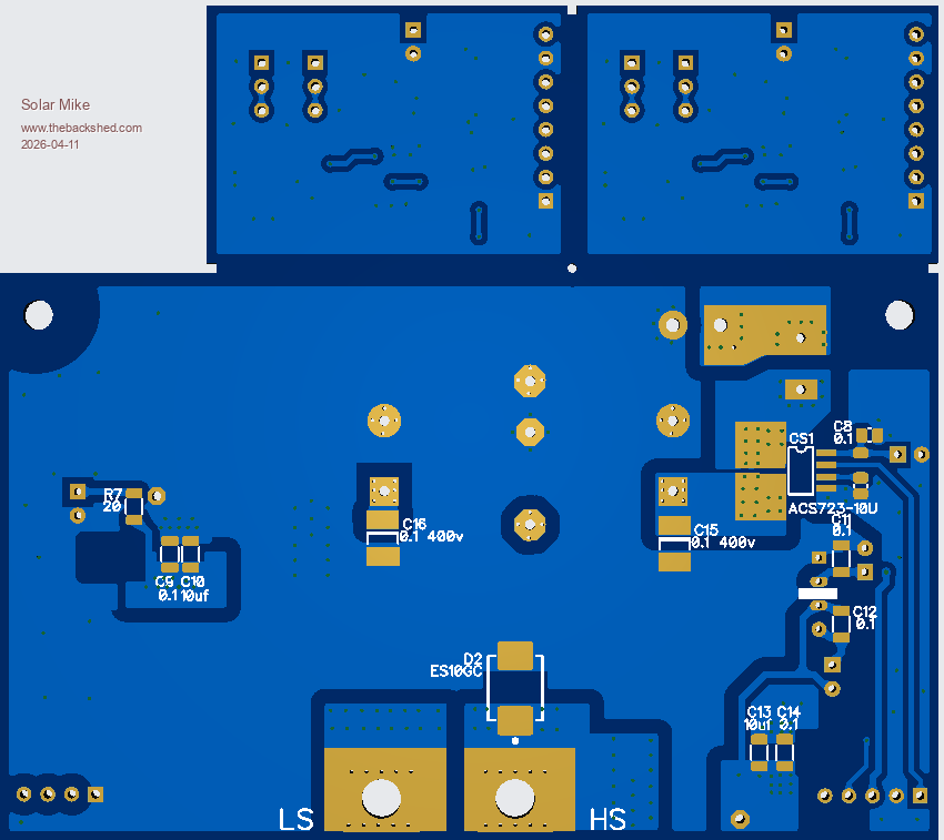 Continuing with this project, have completed a layout for the high current inverter load switch.