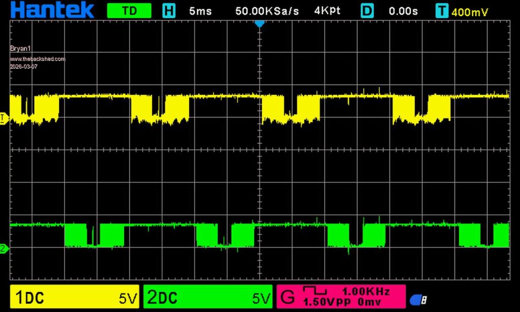 Fell asleep before i saw this. Then had to go to work. If that scope trace is vs1 and vs2, there is an asymmetry between them: the little peaks on the tops of the top trace. My guess (it is just a guess though - it's hard to understand what's going on), would be the gate drive is not getting though on one quarter - or the fets are not turning on. The outputs from the control board seemed ok in the earlier scope traces, so i'm wondrring if the +ve supply (Vtp om the schematic) for the high side drives is getting through ( i'm thinking they use bootstrapping to get the high side drive voltage, so in my mind there's more bits to go wrong there). My guess based on those scope traces is that vs1 high side is trying to turn on but vs2 high side isn't. But my guess is sort of based on the assumption the higher than expected current draw isn't caused by a short. Edited 2026-03-07 10:48 by mab1 |