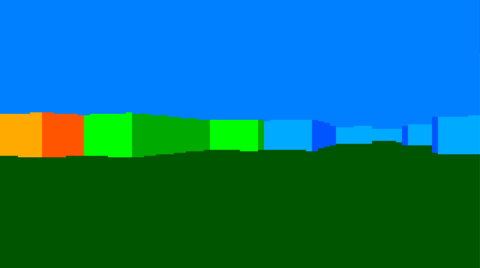 Because it's Sunday. Version 0.86, some calculations have been sped up again, and it is now possible with the dither%-switch to darken the walls depending on 'the distance (selectable dithering). Everyone is free to use and improve the routines. ' Raycaster 2 in MMBasic, DDA method (Digital Differential Analyser) 'V0.86.. added Lookuptables,changed to Blit vs Box,compressed math 'added possible dithering 'By Martin H. for https://www.thebackshed.com 'The software is subject to the terms of the GNU General Public Licence (GPL) 'and may be freely used, copied and updated. 'Individuals are encouraged to freely use and modify the software. dim integer dither%=1,mmb4w=0 CLS If mmb4w Then MODE -7 :CLS RGB(cyan) PAGE WRITE 1 Else MODE 2: CLS RGB(cyan) FRAMEBUFFER create:FRAMEBUFFER write f End If CLS 'sin / cos LookUpTable Const LUTSIZE=360,MULT=128 Dim integer sinLUT(LUTSIZE), cosLUT(LUTSIZE) Dim integer angleIndex = 0 ' direction of view Dim integer rotStep = 5,lh,ys For i = 0 To LUTSIZE - 1 angle = i * (2 * Pi / LUTSIZE) sinLUT(i) = Int(Sin(angle)*MULT) cosLUT(i) = Int(Cos(angle)*MULT) Next ' --- Color scheme Definition --- Dim integer Col(3,2) Col(1,0)=RGB(green):Col(1,1)=RGB(0,170,0) Col(2,0)=RGB(0,170,255):Col(2,1)=RGB(0,85,255) Col(3,0)=RGB(255,170,0):Col(3,1)=RGB(255,85,0) colSky = RGB(0,0,0) colFloor = RGB(0,85,0) ' --- Labyrinth Definition --- mapS=64:mapy=24:mapx=24 Dim integer mapW = 57,mapH = 51,scrW,scrH Dim integer m(mapW, mapH),lw,mx,my',hit Restore MapData1 For y = 0 To mapH-1 :Read k$:k$=k$+"1" For x=0 To Len(k$):m(x, y)=Val(Mid$(k$,x+1,1)):Next :Next ' --- Player Setup --- px = 26.5 : py = 45.5 dx = 1 : dy = 0.5 planeX = 0 : planeY = 0.66 moveSpeed = 0.3 rotSpeed = 0.1 buffer = 0.2 ' --- Grafic Setup --- resStep = 2 scrW = MM.HRES-96 scrH = MM.VRES*.75 precalc_shading needsRedraw = 1 ' Flag to force the first frame invScrW = 2 / scrW halfScrH = scrH / 2 lw=Int((resStep+1)/2) Do ' Only paint when something has changed If needsRedraw Then dx = cosLUT(angleIndex)/MULT dy = sinLUT(angleIndex)/MULT planeX = -dy * 0.66 planeY = dx * 0.66 tt=Timer ' Ceiling and floor Box 0, 0, scrW, halfScrH, , colSky, colSky Box 0, halfScrH, scrW, halfScrH, , colFloor, colFloor 'DDAA cast field of view For x = 0 To scrW - 1 Step resStep cameraX = x * invScrW - 1 rayDx = dx + planeX * cameraX rayDy = dy + planeY * cameraX mx = Int(px) : my = Int(py) If Not rayDx Then dDx = 1000 Else dDx = Abs(1 / rayDx) If Not rayDy Then dDy = 1000 Else dDy = Abs( 1 / rayDy) If rayDx < 0 Then stepX=-1:sdX=(px - mx)*dDx Else stepX=1:sdX=(mx+1-px)*dDx End If If rayDy < 0 Then stepY = -1: sdY = (py - my) * dDy Else stepY = 1 : sdY = (my + 1 - py) * dDy End If 'cast one Ray Do While Not m(mx,my) If sdX < sdY Then Inc sdX,dDx:Inc mx,stepX : side = 0 Else Inc sdY,dDy:Inc my,stepY : side = 1 End If Loop pDist=Max(0.1,(sdX - dDx)*Not(side)+(sdY-dDy)*side) lH = scrH / pDist shade = min (int(pDist>>3)*24,72)*dither% Blit shade+scrw-8+8*m(mx,my)+4*side,0,x,Max(0,halfScrH-(lH>>1)),resStep,Min(lH,scrH) Next x If mmb4w Then PAGE WRITE 0:Blit 0,0,0,0,scrW,scrH,1 Text scrW,0,"X="+Str$(Int(px))+" " Text scrW,12,"Y="+Str$(Int(py))+" " Text scrW,24,Str$(Timer-tt)+" ":tt=Timer PAGE WRITE 1 Else FRAMEBUFFER write n Text scrW,0,"X="+Str$(Int(px))+" " Text scrW,12,"Y="+Str$(Int(py))+" " Text scrW,24,Str$(Timer-tt)+" ":tt=Timer FRAMEBUFFER write f Blit framebuffer F,N,0,0,0,0,scrW,scrH End If needsRedraw = 0 ' Reset Redraw Flag End If ' Wait for button (does not block, but checks efficiently) k$ = UCase$(Inkey$) If k$ <> "" Then Do :Loop Until Inkey$="" ' Enable redraw when a movement key is pressed 'If Instr("WASD", k$) Then needsRedraw = 1 Select Case k$ Case "W" dmx=dx * moveSpeed:dmy=dy * moveSpeed 'don't go through the wall If Not (m(Int(px + dmx), Int(py))) Then Inc px,dmx If Not (m(Int(px), Int(py + dmy))) Then Inc py,dmy Case "S" dmx=dx * moveSpeed:dmy=dy * moveSpeed 'don't go through the wall If Not (m(Int(px - dmx), Int(py))) Then Inc px ,- dmx If Not (m(Int(px), Int(py - dmy))) Then Inc py ,- dmy Case "D" ' Rechts drehen angleIndex = (angleIndex + rotStep) Mod LUTSIZE Case "A" ' Links drehen angleIndex = (angleIndex - rotStep + LUTSIZE) Mod LUTSIZE End Select End If Loop Until k$ = Chr$(27) If mmb4w Then PAGE WRITE 0 sub precalc_shading local integer d75%(3,3) = (1,0,1,0, 1,1,1,1, 0,1,0,1, 1,1,1,1) local integer d50%(3,3) = (1,0,1,0, 0,1,0,1, 1,0,1,0, 0,1,0,1) local integer d25%(3,3) = (1,0,1,0, 0,0,0,0, 0,1,0,1, 0,0,0,0) For s = 1 To 3 ' 1=75%, 2=50%, 3=25% shadeBase = scrw+24+ (s-1)*24 ' 24 Pixel pro Block For n = 1 To 3 For f = 0 To 1 idx = (n-1)*2 + f ' 0..5 baseX = shadeBase + idx*4 For y = 0 To MM.VRES-1 For x = 0 To 3 Select Case s Case 1: p = d75%(y And 3, x) Case 2: p = d50%(y And 3, x) Case 3: p = d25%(y And 3, x) End Select If p Then Pixel baseX + x, y, col(n,f) Else Pixel baseX + x, y, 0 End If Next x Next y Next f Next n Next s For n=1 To 3:For f=0 To 1 box scrw+8*(n-1)+4*f,0,4,MM.VRES,,col(n,f),col(n,f):Next :Next end Sub MapData1: ' Data "11111111111111111111111133333333333331111111111111111111" Data "11111111111111111111111133333333333331111111111111111111" Data "11111111111111111111111130000000000333331111111111111111" Data "11111000011111111111111130000000000333331111111111111111" Data "11111000011111110000000000000000000300331111111111111111" Data "11111000011111110000000030000000000300331111111111111111" Data "11111110111111110011111130000000000333331111111111111111" Data "11111000000001110011111130000000000333331111111111111111" Data "11111000000001110011111133333003333331111111111111111111" Data "11111000000001000000111133333003333331111111111111111111" Data "11111000000000000000111111333003333331111111111111111111" Data "11111000000001000000111111333003311111111111111111111111" Data "11111000000001111111111333333003333111111111111111111111" Data "10011111001111111111111333333003333111111111111111111111" Data "10011111001111111111111300000000333111111111111111111111" Data "1101111100111111111111130033300333