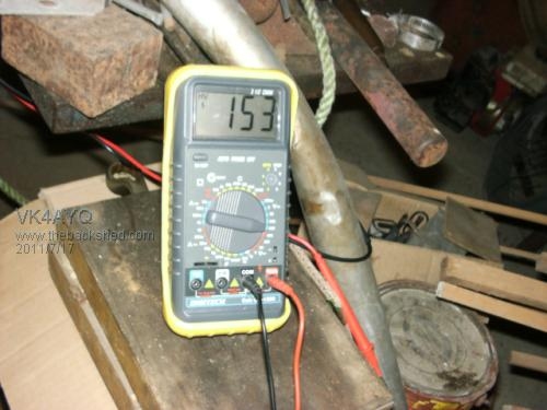 VK4AYQ, Hello Bob, Very good results as I can see them...just how many amps were produced at 900 rpm/star for that 10 min. run time? I think you could have cooked a "wild turkey" with that much power. Keep you'r fingers out and away from those wires. Good work. With kind regards...Mac46 I'm just a farmer |