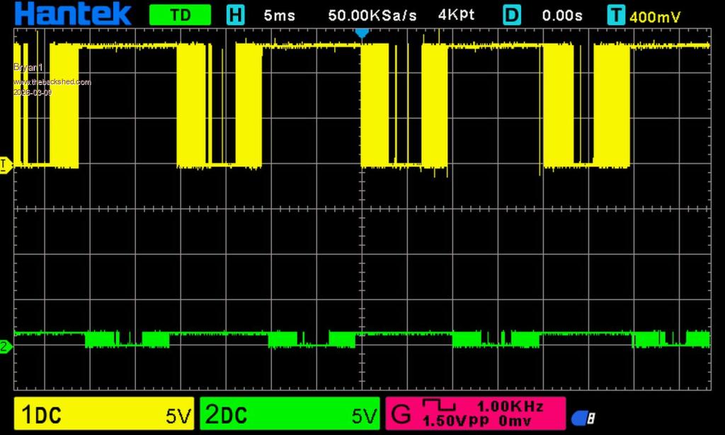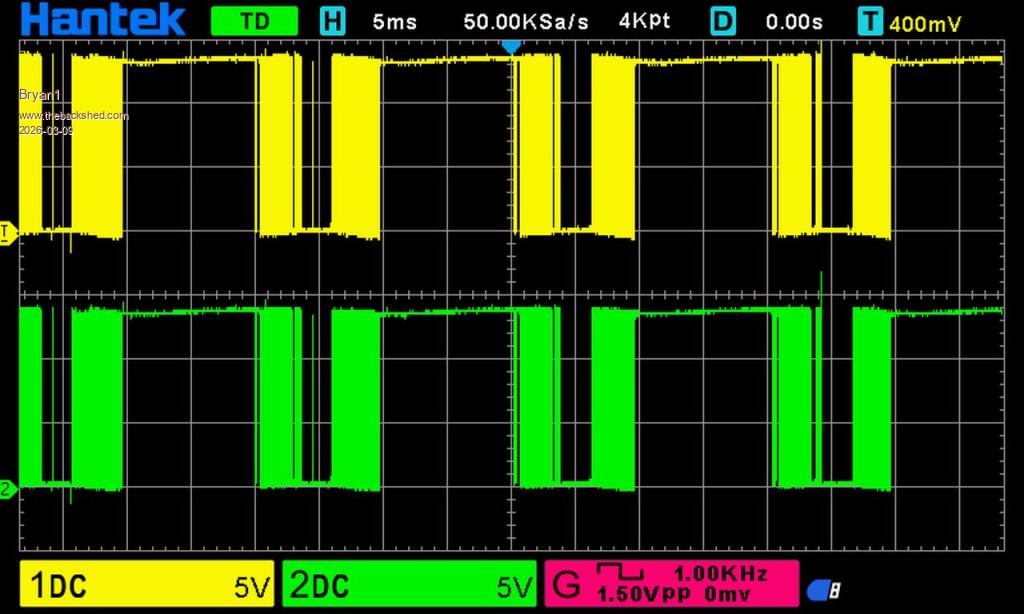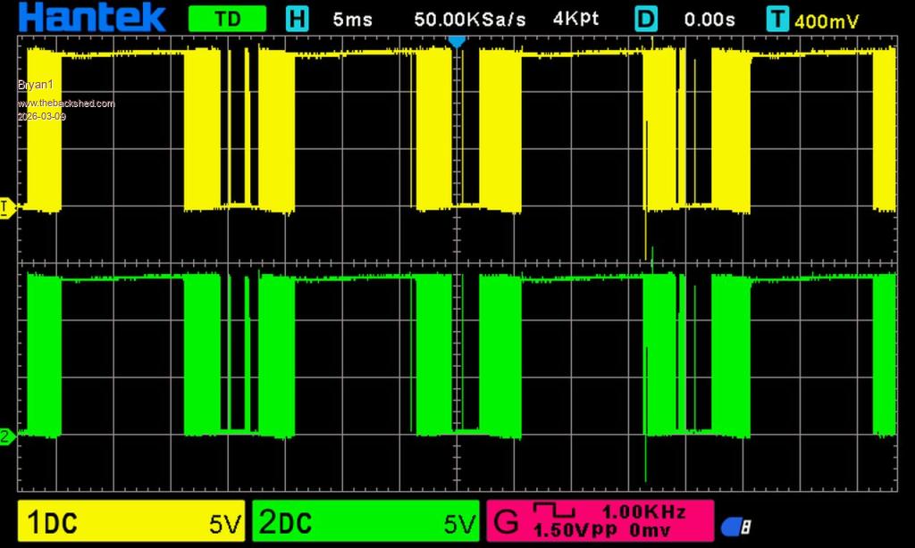 D1, D7 traces seem to show something wrong by the low P-P voltage of the green trace (D7) but I am no sure yet.