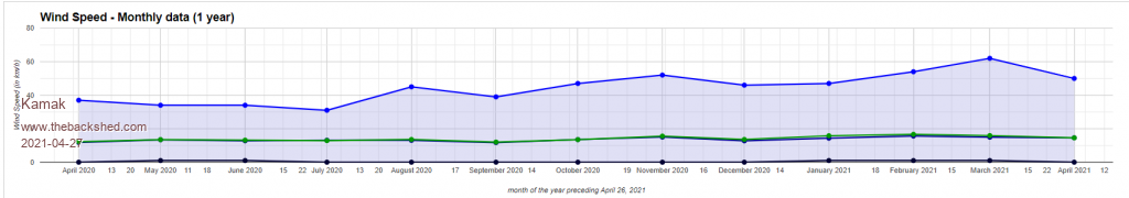 If this calculator is correct, then the minimum rotor power required to deliver the minimum torque to the gearbox to maintain 1200W at 910rpm, 240V ac @5A single phase per winding, is: 3.038KW to make 1.200KW, 2.5:1 reduction. 34Kph. Not including startup and acceleration torque. how-to-calculate-the-power-generated-by-a-wind-turbine The second chart is the local monthly avg. wind speed. ![]() Obviously, the rotational speed would not be correct due to the minimum torque required to spin the gearbox at 91rpm @ the ring gear to produce 910rpm at the sun gear. https://www.hbm.com/en/3108/torque-measurement-in-wind-turbines/ ![]() ![]() Edited 2021-04-27 04:19 by Kamak |
