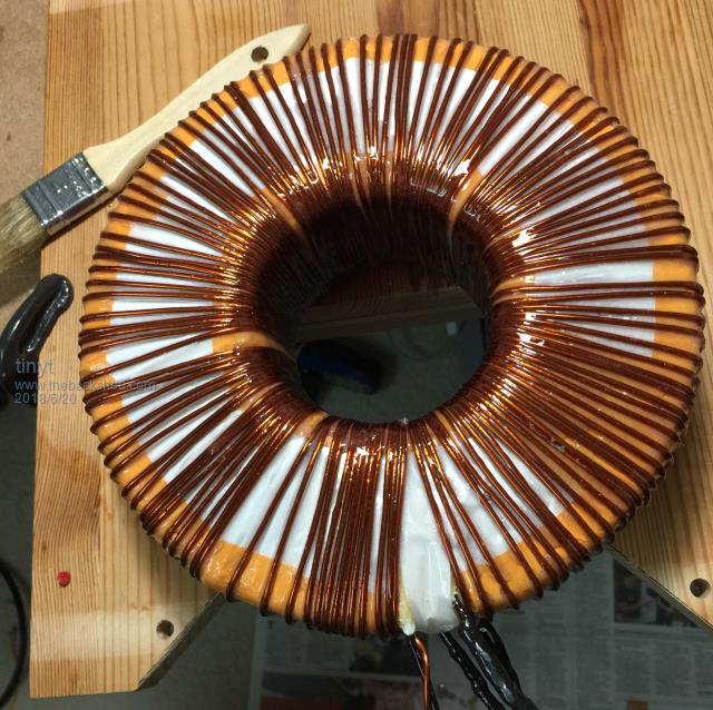 The boat epoxy came which is much thinner and that is what I used on this second added 115vac winding. I covered everything in one application, set it on the table to dry. The epoxy oozed down. Good thing I placed a poly sheet on the table, otherwise I would have ended with a boat anchor glued on the table. Next time I think I am going to hang it to dry.