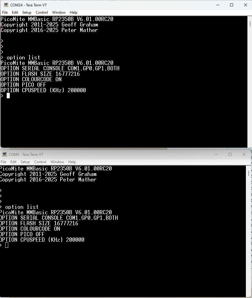 Forum Index : Microcontroller and PC projects : PicoMite V6.01.00 release candidates