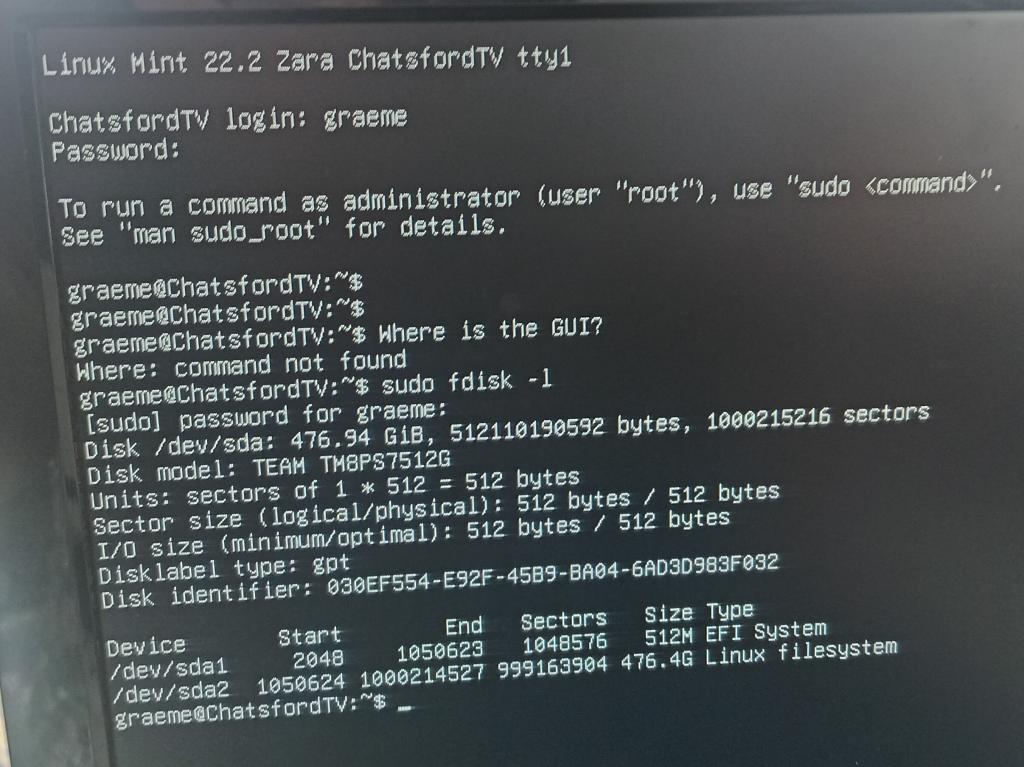 Asks for my username and PW to continue(at terminal mode), and I supply that, and THAT IS ACCEPTED, then the system never recovers to the GUI. Edited 2026-01-17 17:16 by Grogster