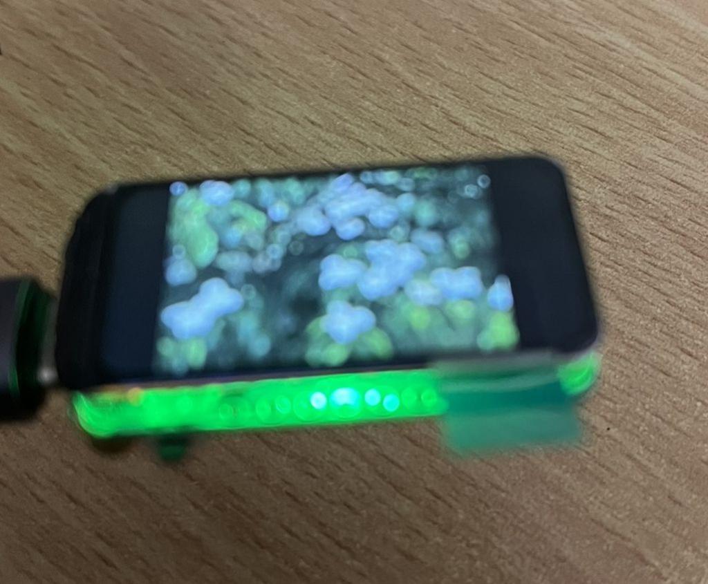 No, the light doesn't shine through the display. It's only visible at the edges. It's noticeable that the color numbers don't correspond to standard LEDs. For example, RGB (red) produces green, RGB (green) produces red, but RGB (blue) produces blue. Sorry about the poor photo quality. I wanted to show the entire light. ![]() |