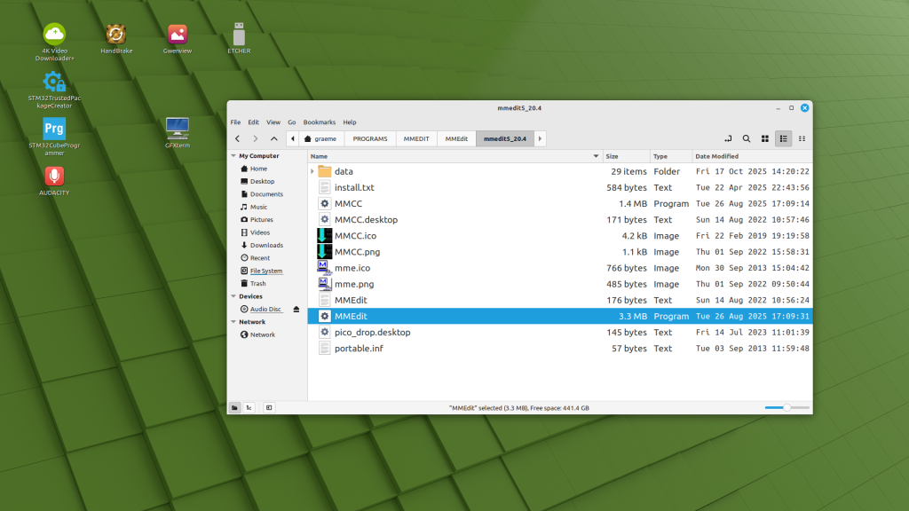With Linux Mint installed, download the MMEDIT ZIP file, which contains both the Windoze AND Linux versions.