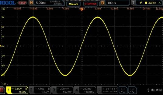 The AC output should look like the following, an AC output filter is not connected in this bench test setup, the DSO probe is connected across a 3uf to 4uf 400vac SPWM filter CAP which should be wired permanently across the secondary of the Toriod, the secondary being the AC output.